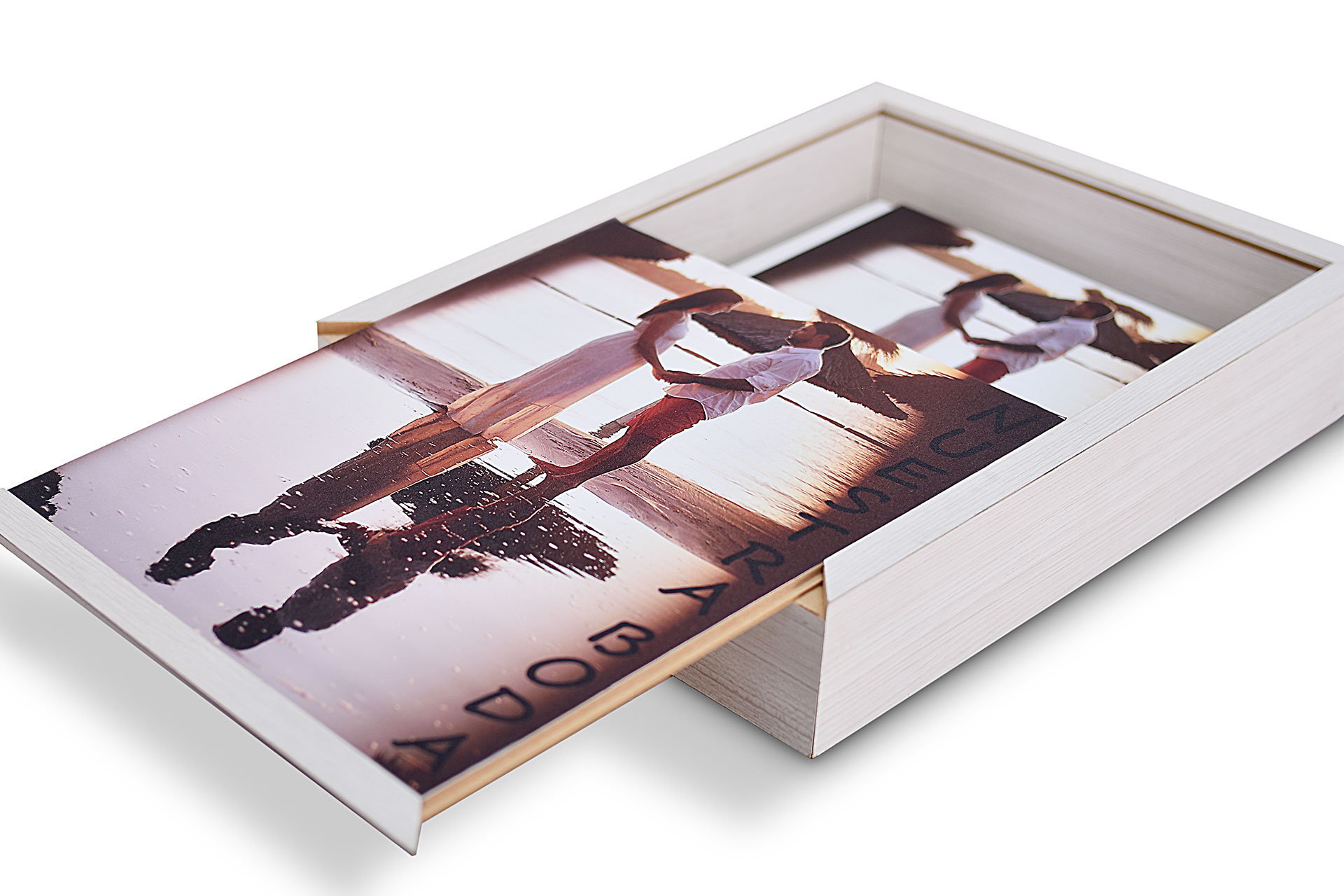 Caja de Madera y Foto para guardar fotolibro (No incluye fotolibro). Tamaño 35x35cm, profundidad 6cm.Código DSC_3616-Caja-fotolibro-A.